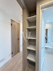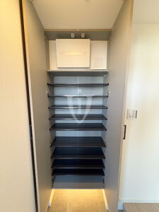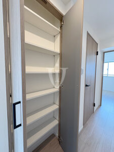 廊下には可動棚付きの収納が付いています。