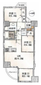 14階三方開口で明るい3LDKタイプです。