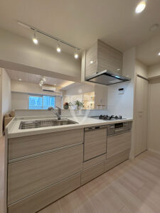 ウッド調パネルで高級感が演出されたシステムキッチンです。