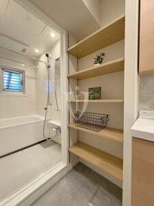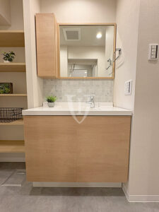 意外にごちゃごちゃしがちな洗濯機周りですが、扉が付いているので急な来客時などに重宝しそうです。
