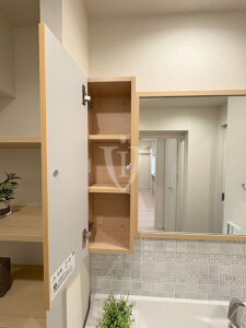 さらにドレッサー横には可動棚付きの収納が付いています。