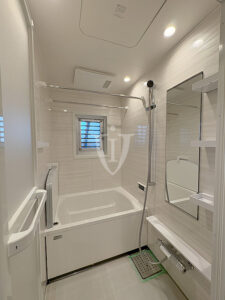 ライトベージュのグラデーションパネルが優しいくつろぎの空間を演出する、ゆったりサイズのバスルームです。