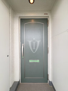 共用部扱いとなる玄関ドアも、ダブルディンプルキーに耐震枠を採用したものに交換済。