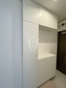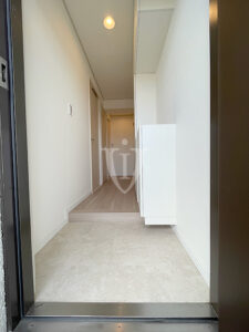 玄関収納は二列カウンタータイプと一列トールタイプを組み合わせた複合ユニットを採用。