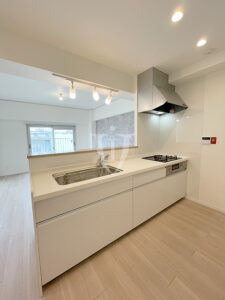 ホワイトパネルで清潔感のあるシステムキッチンです。