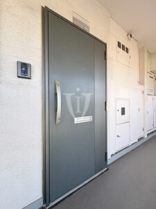 共用部扱いとなる玄関ドアも、ダブルディンプルキーに耐震枠を採用したものに交換済。
