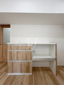 キッチン背面にはカップボードが付いています。