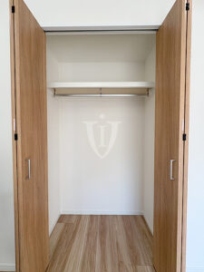 こちらの洋室には壁一面のワイドクローゼットが付いています。