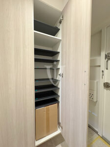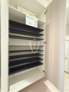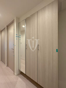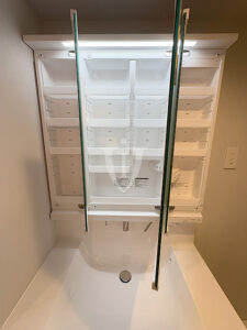 扉の片側には大きな一枚鏡が貼り込んであり、毎日の身だしなみチェックに活躍してくれそうです。