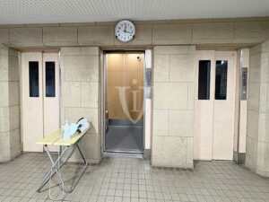 飲料水の自動販売機が3台も設置されている、広々としたエントランスホールです。