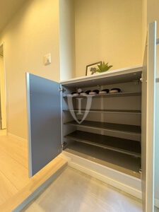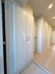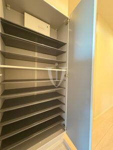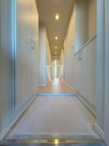 廊下には扉付きの可動棚収納が付いています。
