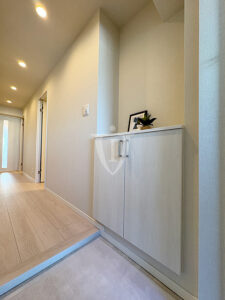 玄関収納の反対側には二列カウンターユニットも付いており、花や置物など、お好きなデコレーションも楽しめそうです。