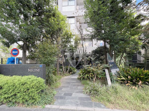 植栽で彩られたエントランス外観です。