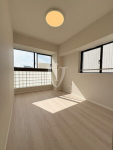二面採光で明るく、リビングに接する約5.9帖の洋室1です。