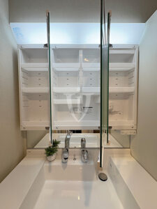 三面鏡の裏側は収納になっています。