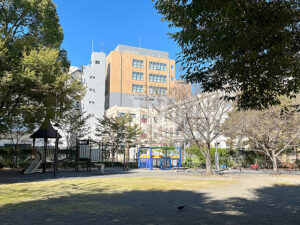 物件から徒歩約3分の箱崎公園です。