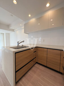 ウッド調パネルで高級感が演出されたシステムキッチンのシンク部です。