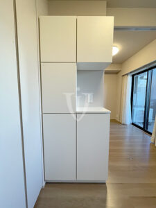 キッチン奥にはカップボードが設置されています。