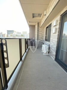 リビングに面した東南向きで明るい、奥ゆきたっぷりバルコニーです。