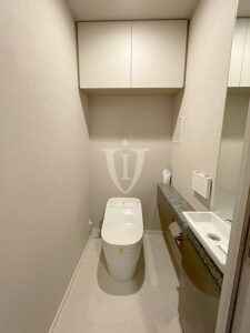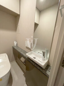 トイレには鏡付きのカウンター手洗い器が設置されています。