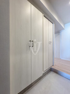 ドレッサー横には扉付きの可動棚収納が付いています。
