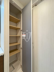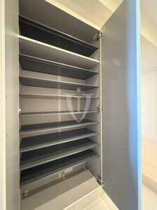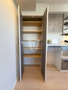 さらにその反対側にも扉付きの可動棚収納が付いています。