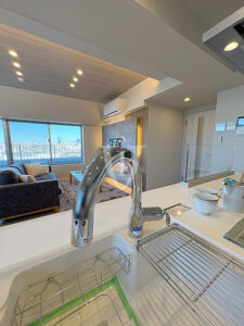 柔らかな曲線の輝きが美しい、浄水器内蔵のグースネック水栓を採用しています。