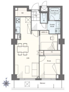 陽当たり眺望良好5階南向き2LDKタイプです。