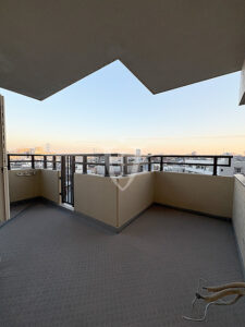 リビングと洋室にも面した南東向きで明るいワイドバルコニーです。