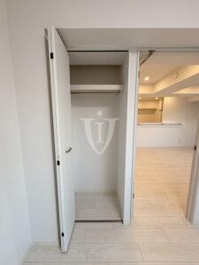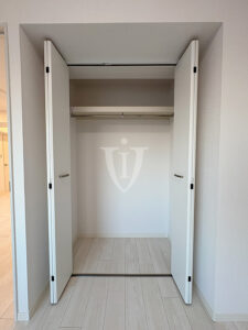 こちらの洋室には壁一面のワイドクローゼットが付いています。