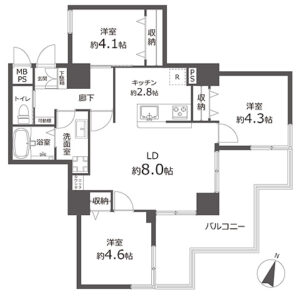 6階南東向きで陽当たり眺望良好な3LDKタイプです。