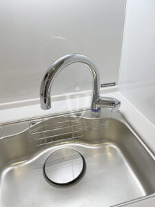 つややかに輝く浄水器内蔵型グースネック水栓を採用しています。