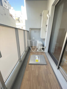 ウッド調シート貼りの床面が素敵な西向きのバルコニーです。