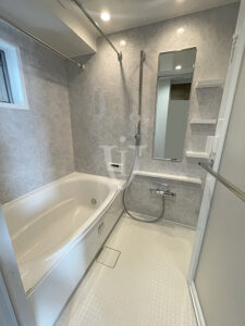 フラワーガーデン調グロスパネルが素敵なくつろぎの空間を演出する、ゆったり1317サイズのバスルームです。