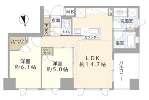 角住戸ならではの開口部が多く風通しの良い、2LDKタイプ。