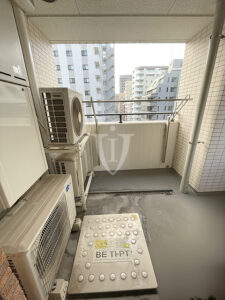 西・北二面開口で明るい、奥行きたっぷりバルコニーです。