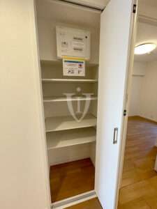 内部には可動棚収納が二つも造り付けられており、使い勝手が良さそうです。