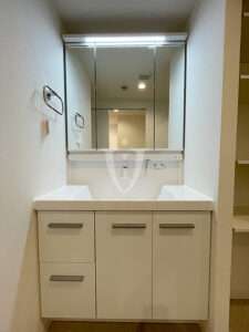扉の片側には大きな一枚鏡が貼り込んであり、毎日の身だしなみチェックに活躍してくれそうです。
