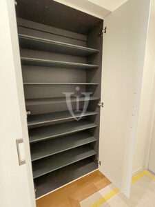廊下には扉付きの可動棚収納が付いています。