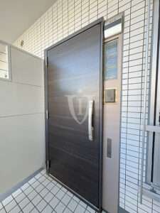 共用部扱いとなる玄関ドアも、ダブルディンプルキーに耐震枠を採用したものに交換済。