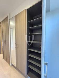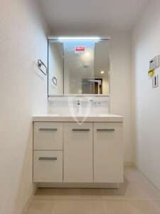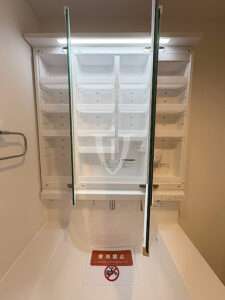 扉の片側には大きな一枚鏡が貼り込んであり、毎日の身だしなみチェックに活躍してくれそうです。