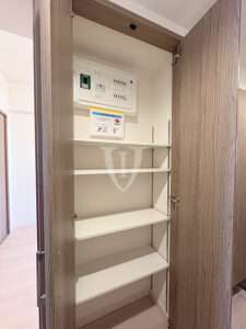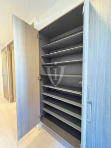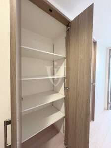 玄関収納の隣には扉付きの可動棚収納が付いています。