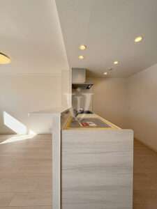ワークトップから高さがあり、リビング側から手元を隠せる便利なカウンターが付いています。