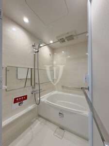 ライトベージュのグラデーションパネルが優しいくつろぎの空間を演出する、ゆったりサイズのバスルームです。