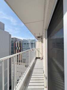 南西向きで明るいワイドスパンバルコニーです。