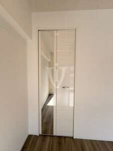 クローゼットの扉には大きな一枚鏡が貼り込んであります。