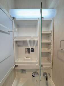 鏡の裏側は収納になっています。