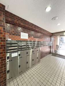 メールコーナーもきれいに管理され、不在時に便利な宅配ボックスが付いています。