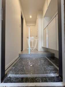 ちょっとゆったり目の玄関、室内廊下は大理石貼りです。