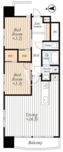 最上階9階西・北向き角住戸、ダブルウォークインクローゼットなど収納の充実も魅力の2LDKタイプです。